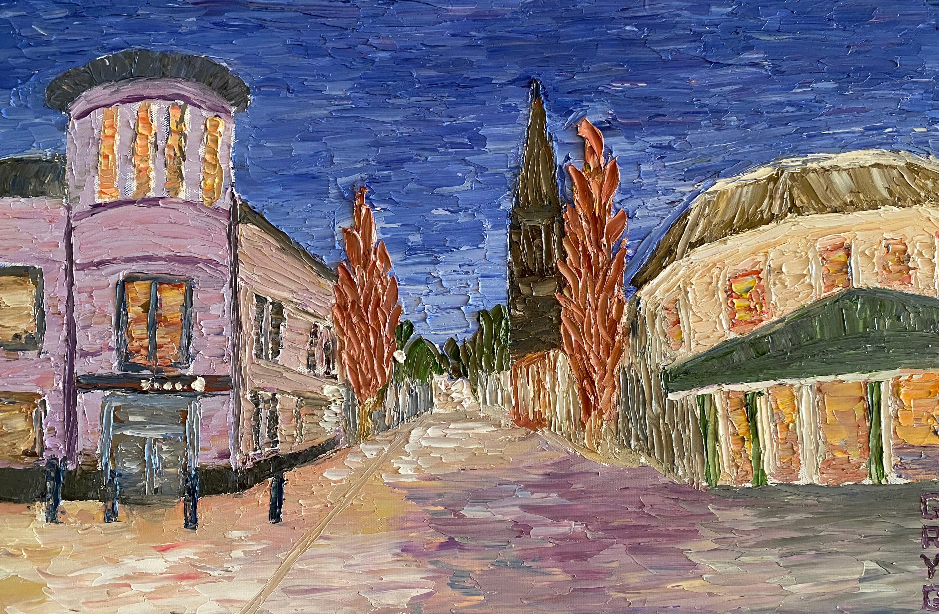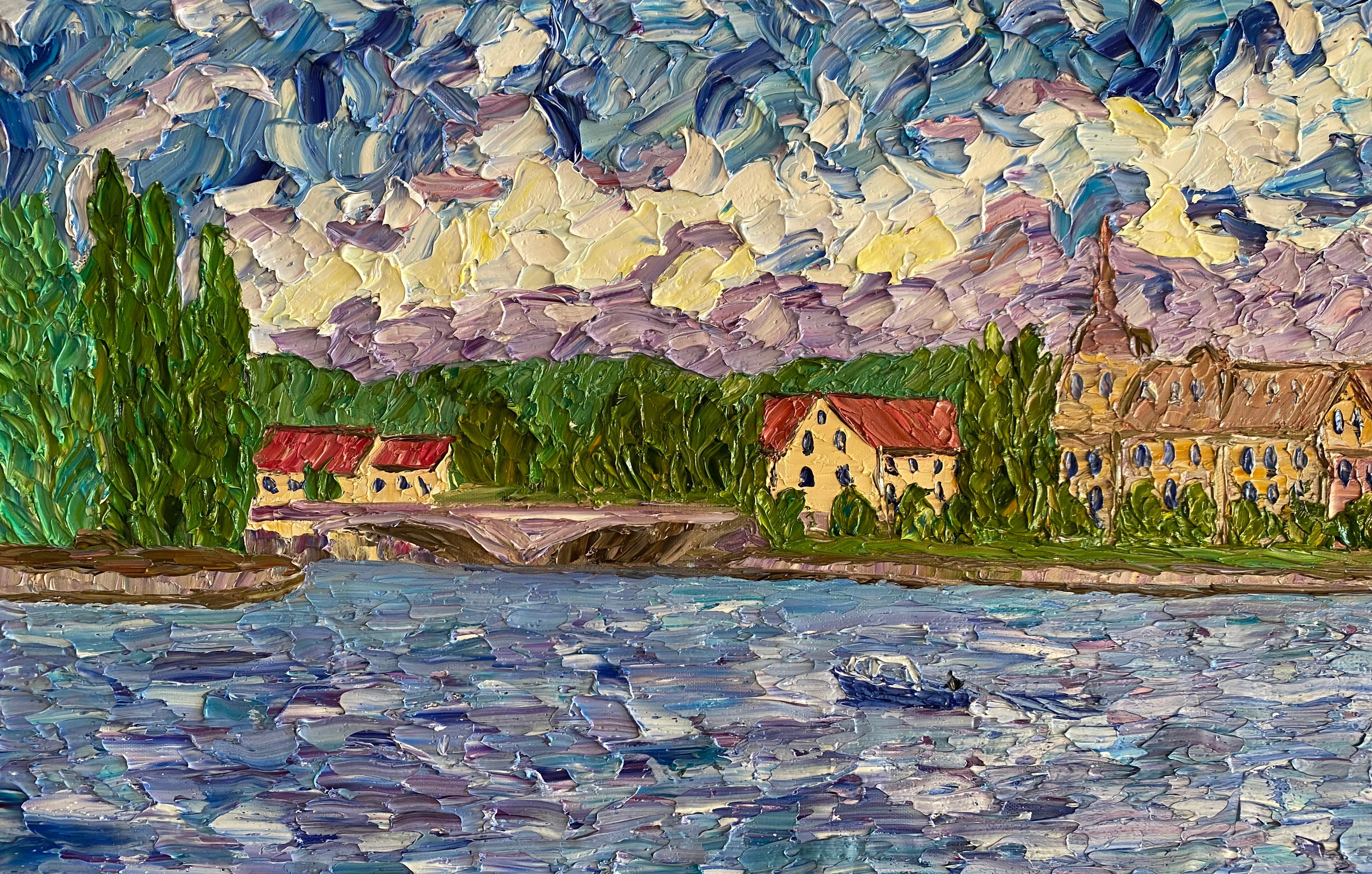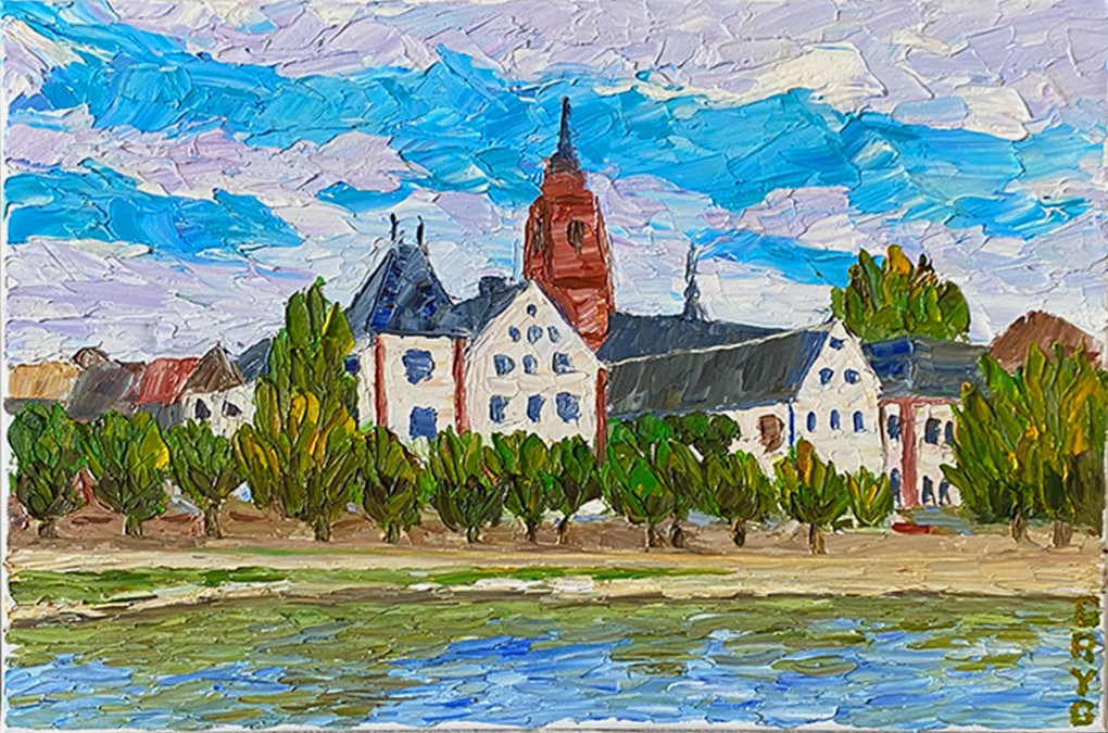 De kunstenaar toont de stad niet enkel als architectuur, maar als een ruimte vol leven: het licht van lantaarns, de weerspiegeling van gebouwen in het water, de rustige wandelingen van de bewoners. Elk schilderij is een uitnodiging om het ritme van de stad te voelen, waar de geschiedenis net zo hoorbaar is als het ruisen van de wind in de bladeren.