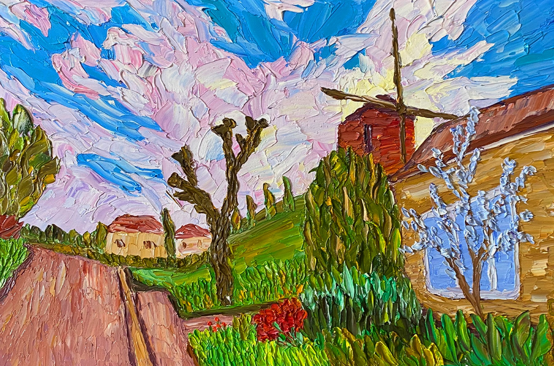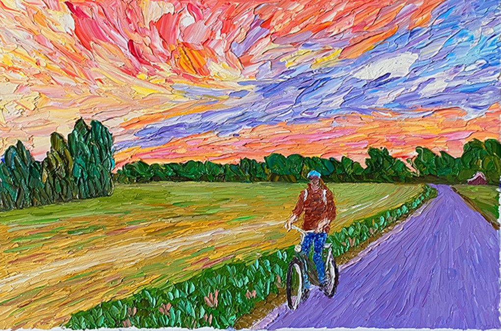 In mijn schilderijen zoek ik naar de schoonheid van het alledaagse – wandelingen langs velden, de stilte van het platteland, vurige luchten bij zonsondergang en de vertrouwde straten van mijn stad. Elk doek is een herinnering, een moment dat ik wilde bewaren en delen.